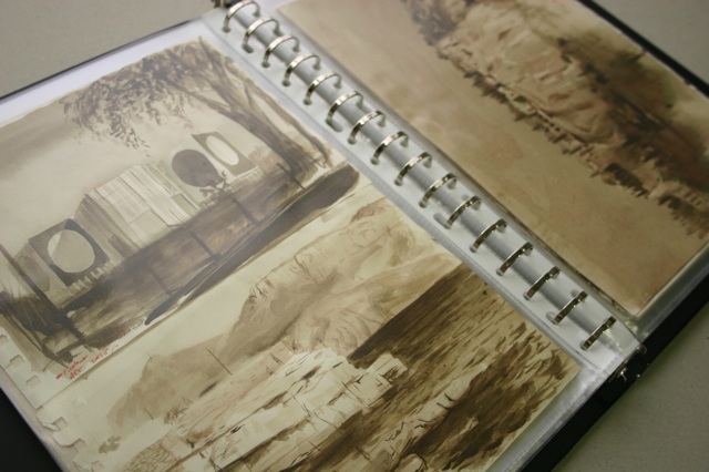 De promedio, dedicaba unas dos horas a los trabajos mas grandes y entre media y una hora a los trabajos de block. Creo que llegue a realizar hasta cuatro y cinco dibujos por día desechando solamente un par de trabajos, una vista de la tumba de Machado en el cementerio y una vista de los acantilados hacia el Norte.