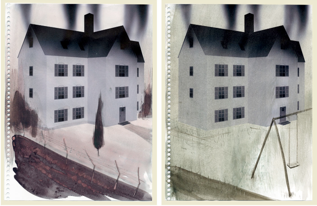 Acuarela e impresión sobre papel de cuaderno.