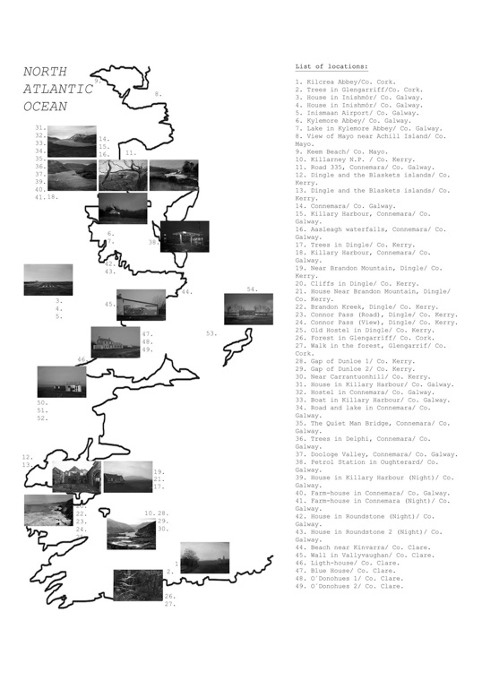 Este proyecto, consistió en la realización de una larga serie de pinturas que representaban diversos paisajes de la Costa Oeste Irlandesa: desde vistas convencionales con una visión típicamente turística, hasta fragmentos en zoom de vistas menos conocidas y solo reconocibles por los habitantes locales.