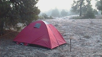 No he podido recoger por completo el campamento ya que la tienda estaba cubierta de una fina capa de hielo y he tenido que dejarla montada hasta el mediodía.